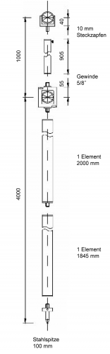 – pointe en acier trempé 0,1 m