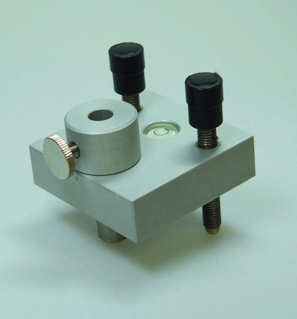 est positionné sur le point. Une nivelle sphérique ajustée par 2 vis de règlage assure la