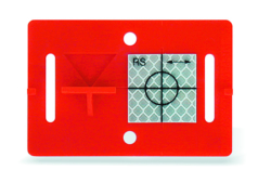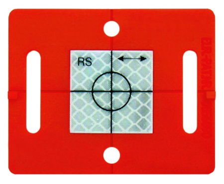 Plaquette de mesure avec cible réfléchissante de 3 x 3 cm. Réticule imprimé. Avec champ d’inscription.