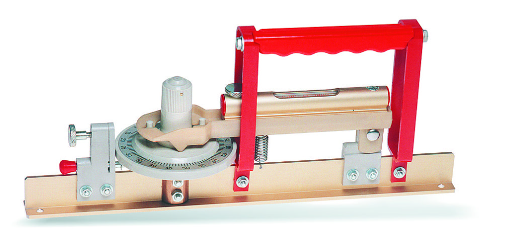 Mittels der Mikrometerschraube wird die Libelle horizontiert und die Überhöhung kann am Rand der Schraube schnell und präzise abgelesen werden.