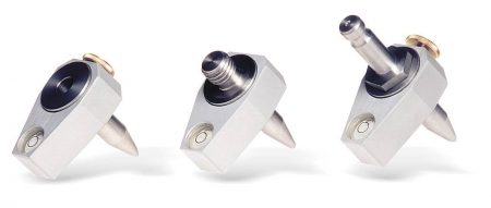 Absteckspitze mit integrierter Dosenlibelle zum lotrechten Aufhalten. Für alle gängigen Prismensysteme: