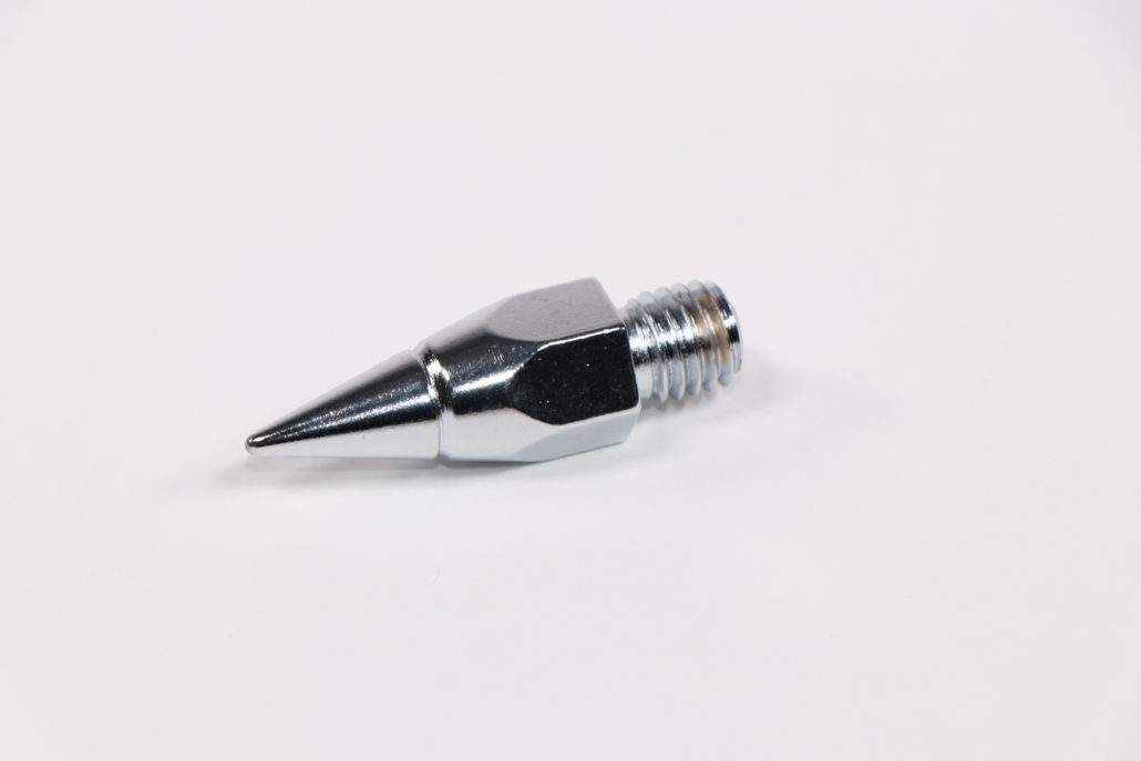 Spitze aus eloxiertem Aluminium mit eingeschraubter Stahlspitze. Gesamtlänge 80 mm.